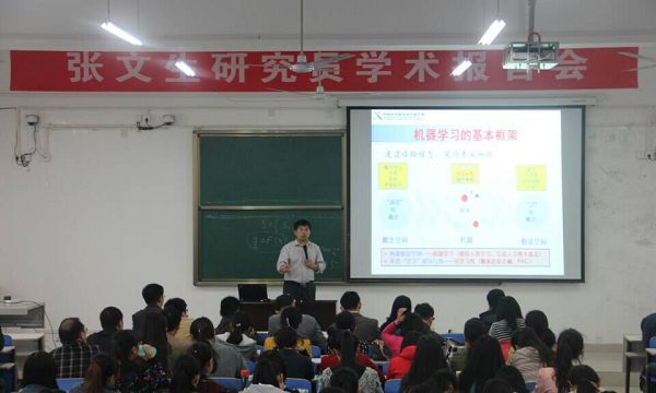 报告会上,张教授以谚语“活到老学到老”引入什么是机器学习以及样本的可学习性。张文生教授讲解了最恰当的学习方式——统计、数据采样技术、如何评价机器学习的效果、机器学习的基本框架等方面的问题,并演示了其研究团队的最新成果。张教授阐述了这些领域的重要性,并鼓励台下的学生充分利用时间多学一些东西充实自己。张教授的报告会脉络分明、层次清晰,丰富了大家的知识,开阔了师生的视野,活跃了我院的学术气氛,师生受益颇丰,对于在座师生的学习研究起到了指导作用。(计算机学院 李悦 黄慧齐/供稿)