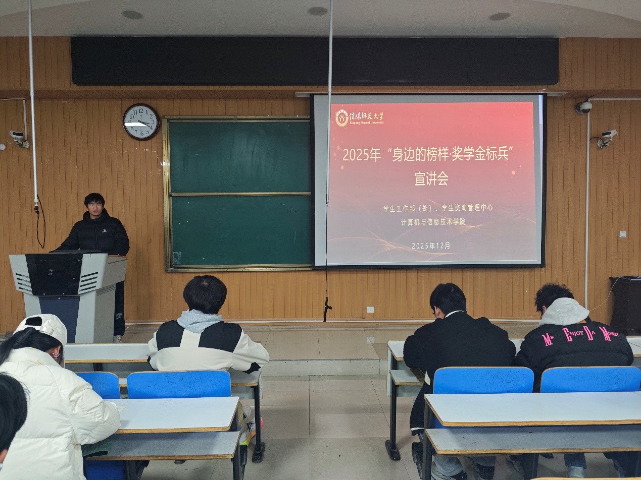 为深化资助育人成效,充分发挥奖学金标兵的示范引领作用,进一步营造勤学向上的优良学风,我院于12月18日晚在107教室举办“身边的榜样·奖学金标兵”宣讲会。本次活动特邀三位来自不同学院的优秀奖学金获得者进行经验分享,2025级全体同学参加。
